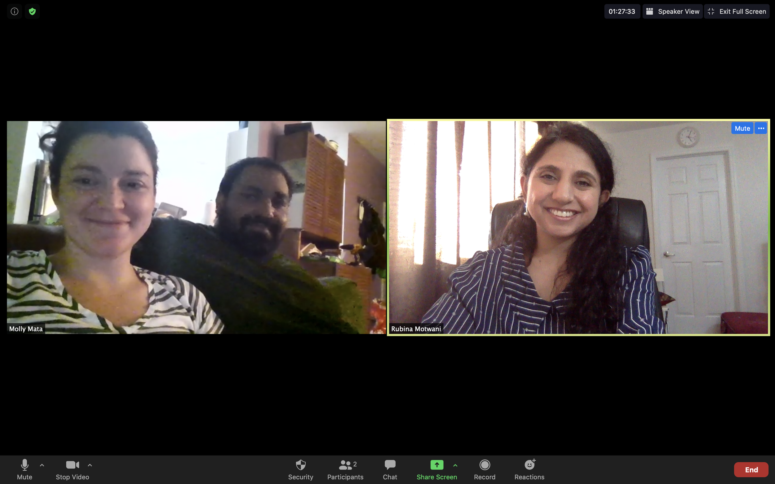 “HypnoBirthing classes have helped us to relax and feel much calmer in general. Rubina is a wonderful educator + coach. She is patient + accommodating and we feel she is very invested in our experiences.”