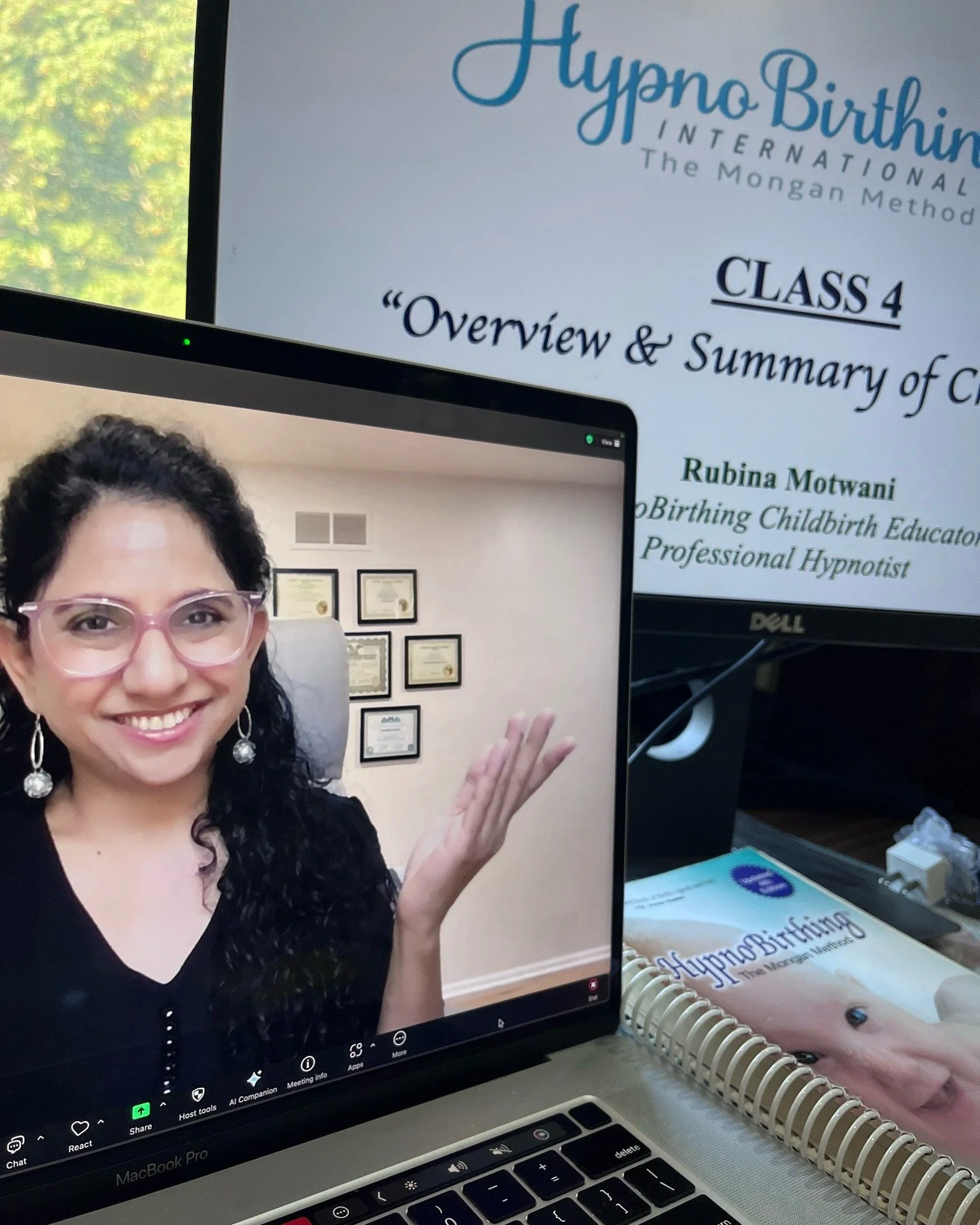 “Rubina's HypnoBirthing classes were wonderful. She was a pleasure to work with, easy to get a hold of, and very accommodating as she offered Zoom classes around our busy schedules. Her classes were very thorough and she provided plenty of resources and support to ensure my husband and I were comfortable and ready for our birthing experience. I am due in 10 days and feel calm and confident about childbirth thanks to Rubina. I highly recommend taking her classes if you are interested in learning how to have a natural, instinctual birthing experience.”